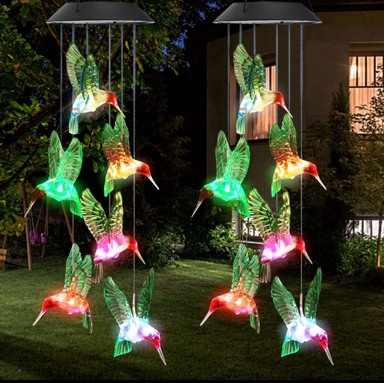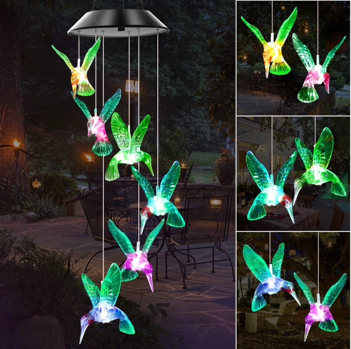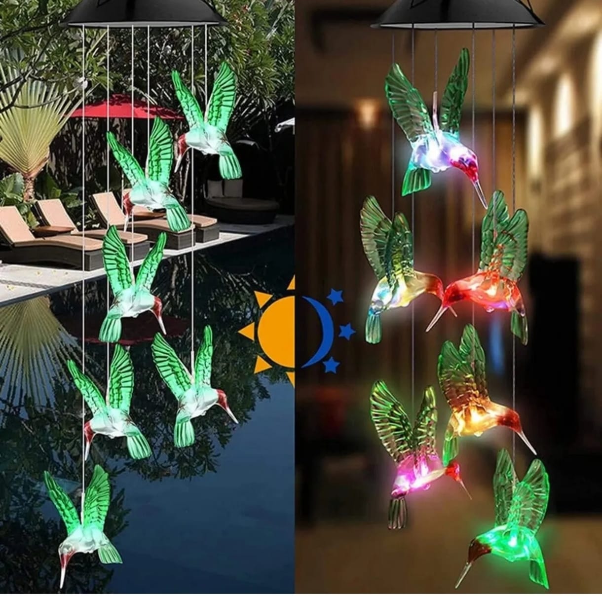 Güneş enerjisiyle çalışan bu zarif Kuş figürlü rüzgar çanı, gündüz